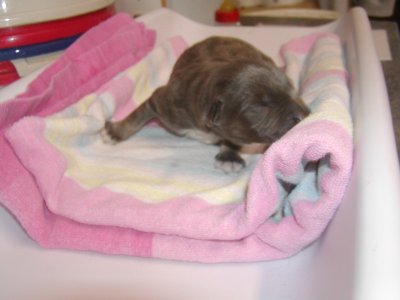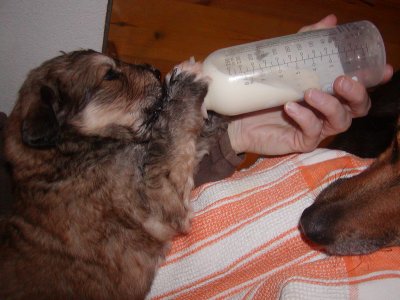 Nach diesem Vorfall habe ich die restlichen 3 Welpen von Daisy getrennt und sie mit der Flasche weitergefüttert. Sie haben brav gefressen und zugenommen.