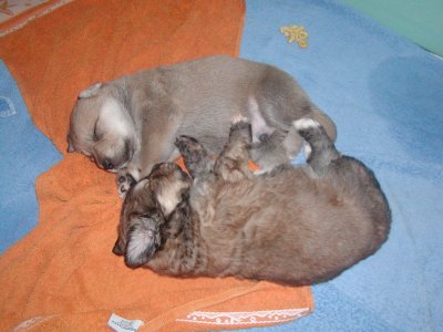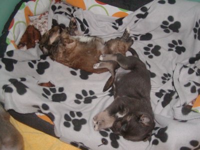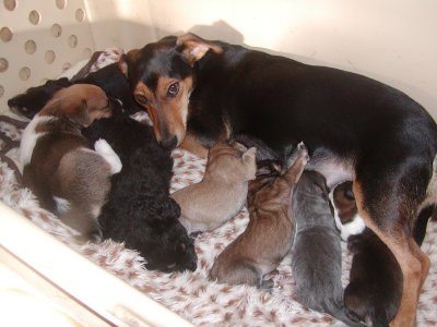 Daisy, die Dackeldame aus Nove Mesto, hat mir dabei geholfen. Sie hat die Kleinen angenommen, gesäugt und geputzt.